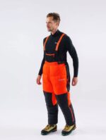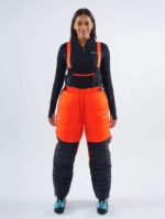 Утеплювач – гусячий пух високої якості: він має малу вагу, добре стискається і повертає форму і пухнастість, ефективно гріє. Спеціальна “коробчаста” конструкція пухових пакетів виключає можливість переміщення пуху, проникнення холодного повітря через шви та утворення холодних зон. Незважаючи на об’єм, у напівкомбінезоні легко рухатися завдяки вбудованій ластовиці та шарнірним колінам.