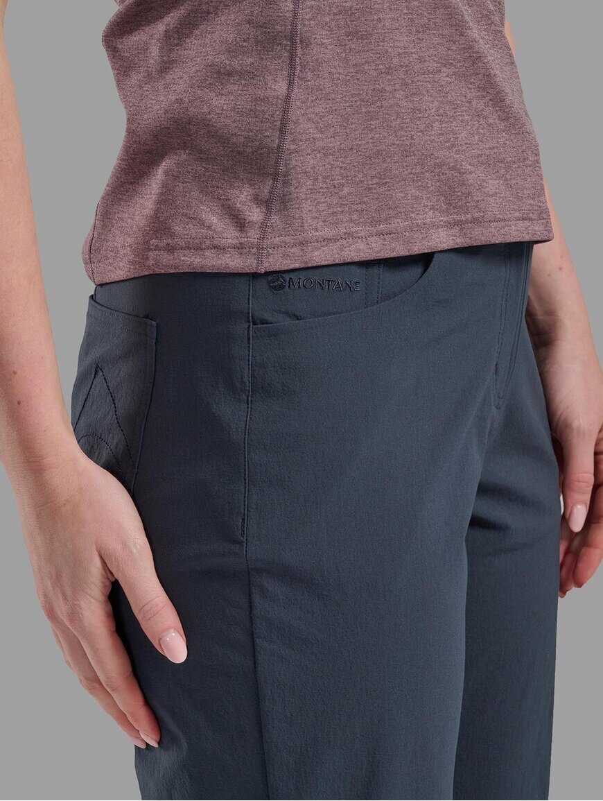 MONTANE Genoa Lite Pant Regular W – зручні жіночі штани для активного відпочинку та повсякденного використання. Виготовлені з еластичної переробленої тканини GRANITE STRETCH, вони забезпечують свободу рухів, швидко сохнуть і мають водовідштовхувальне покриття, що захищає від легкої вологи.