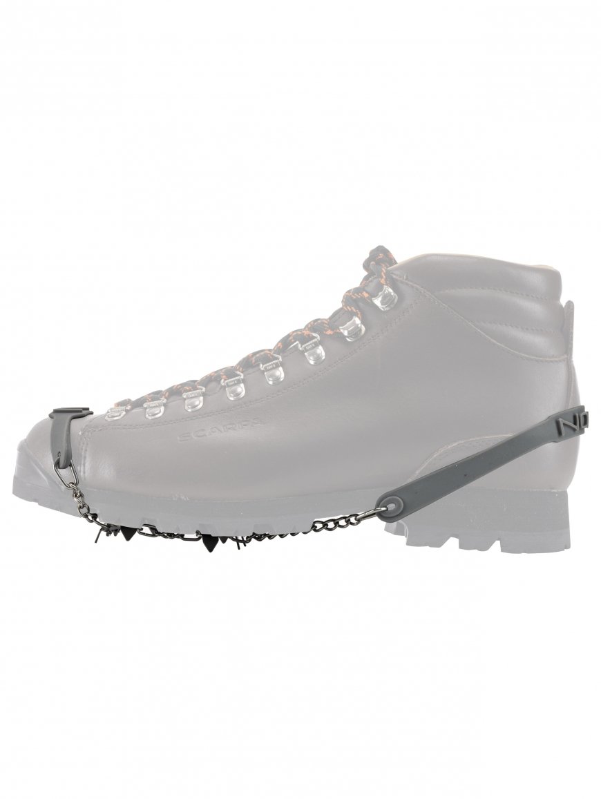 Ланцюгова система кріплення сумісна з будь-яким міським та трекінговим взуттям, а силіконовий ремінь-фіксатор автоматично підлаштовується під його розмір та форму. Також завдяки особливостям конструкції льодоступи не псують матеріал та поверхню взуття.