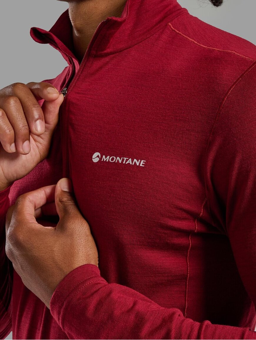 MONTANE Malli Long Sleeve Zip T-Shirt M – легка чоловіча термофутболка з довгим рукавом і короткою блискавкою. Вона поєднує м’якість мериносової вовни та міцність синтетики, добре відводить вологу й не вбирає запахи. Підходить для походів, трекінгу та активностей у прохолодну погоду.